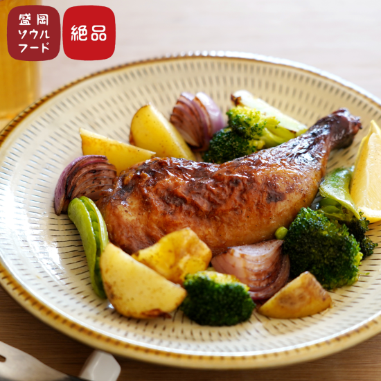当店自慢の鶏もも肉のローストチキンは、味も見た目もこだわり抜いた逸品。